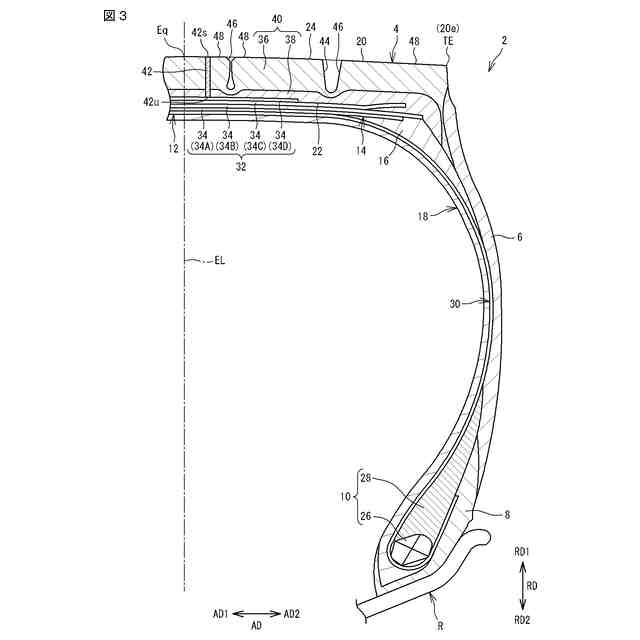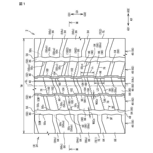本発明において、タイヤを正規リムに組み、タイヤの内圧を正規内圧に調整し、このタイヤに荷重をかけていない状態は、正規状態と称される。