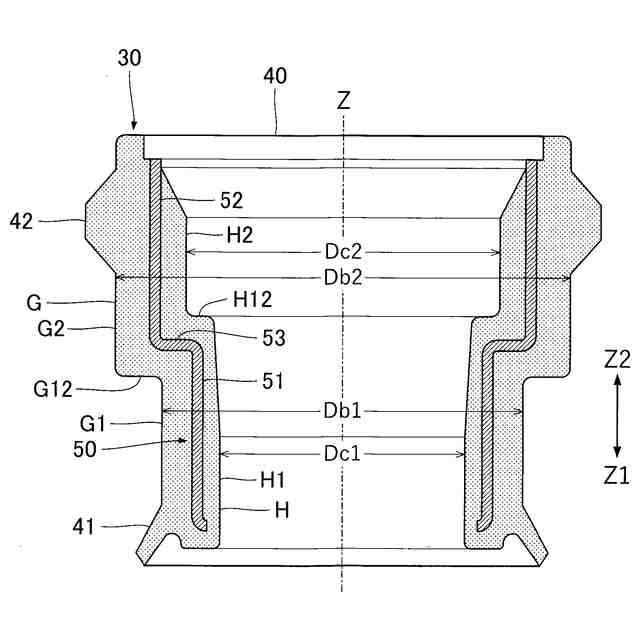 前記第1突起部は、前記弾性体の中心軸に沿って前記段差面から離間する方向に向けて拡径するシールリップであり、