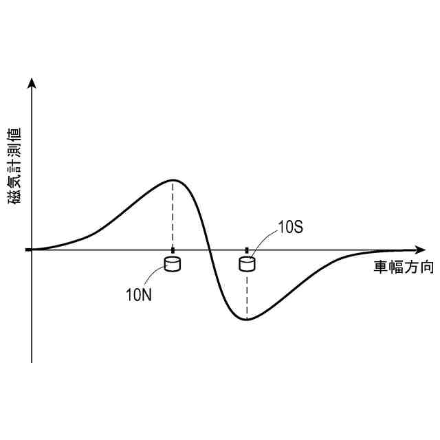従来より、車両が走行中に検出できるように走路に沿って磁気マーカが配置されたマーカシステムが知られている(例えば特許文献1参照。)。このマーカシステムは、例えば、車幅方向に長い検出エリアを備える磁気センサユニットを備える車両を対象としている。車両は、走行中に磁気マーカを検出すると共に、検出した磁気マーカに対する横偏差を計測する。マーカシステムでは、例えば、磁気マーカに対する横偏差をゼロに近づけるように車両の操舵輪が制御され、これにより、走路に沿う車両の自動走行が実現される。