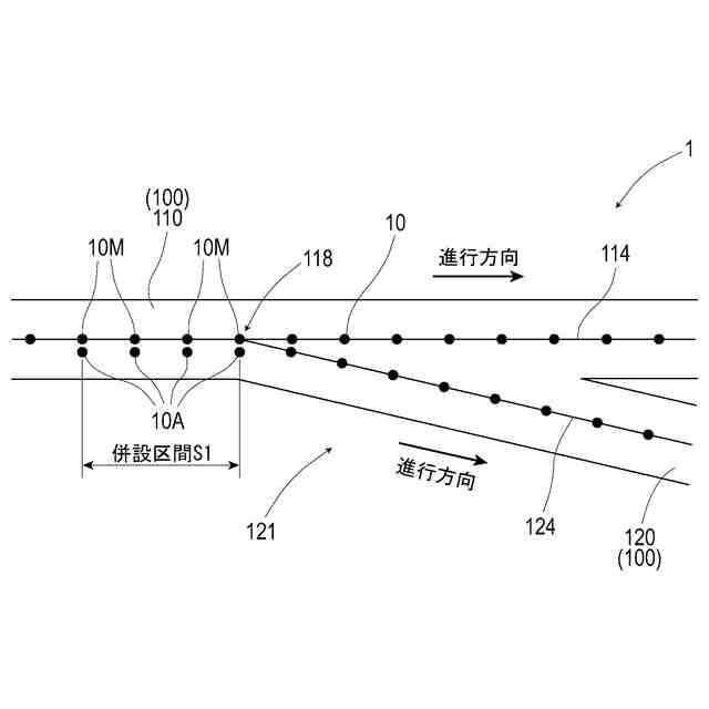 前記経路には、本線をなす経路のほかに、分岐点を起点として本線をなす経路から分岐する経路、及び本線をなす経路に合流点で合流する経路、のうちの少なくともいずれかの経路が含まれており、