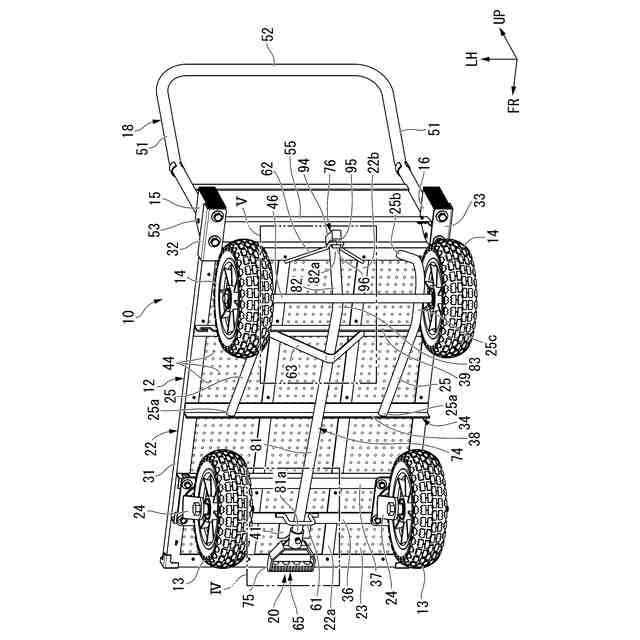しかし、例えば、ハンドル部を押して荷台車で重い荷物を運搬する場合や、ハンドル部を押して荷台車で坂道を上って荷物を運搬する場合等に、ハンドル部を押す使用者に大きな負担がかかる。このため、荷台車で荷物を運搬する際の負担を軽減できる技術の実用化が望まれている。