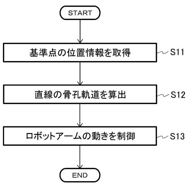 二つの前記基準点の位置情報は、前記外科手術の術者により、前記ロボットアームに取り付けられたプローブを前記骨の二つの前記基準点に接触させて取得され、二つの前記基準点の位置情報は、前記骨孔作製装置においてロボットアームの位置を規定するための三次元座標において規定される位置情報である、