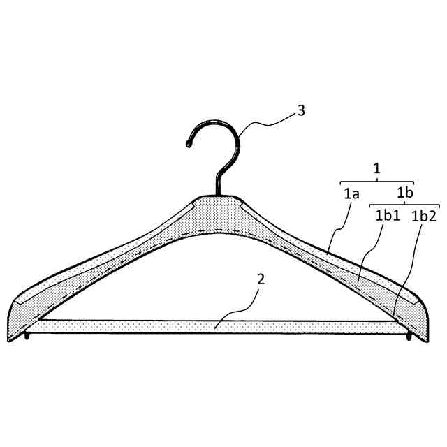 衣服等が掛けられるハンガーにおいて、掛けられた衣服等が滑り落ちることは好ましくない。しかし、特許文献1に記載のハンガーでは、衣服等の滑り落ちに関しては考慮されていない。特許文献2~6に記載されているハンガーでは、滑り止め用の様々な部材がハンガー本体と一体形成されるか、またはハンガー本体と別に形成された後にハンガー本体に取り付けられている。特許文献2~6に記載のハンガーは、複数の部材を必要としており、製造工程が煩雑である。また、特許文献1~6には、ハンガーの触感を良好にしようという意図はない。