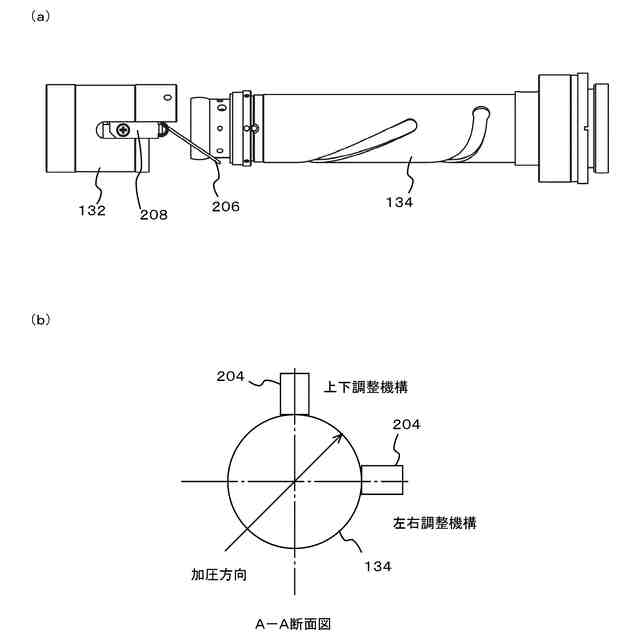 前記調整機構は、前記正立系筒の軸方向を傾ける調整を行う機構であり、