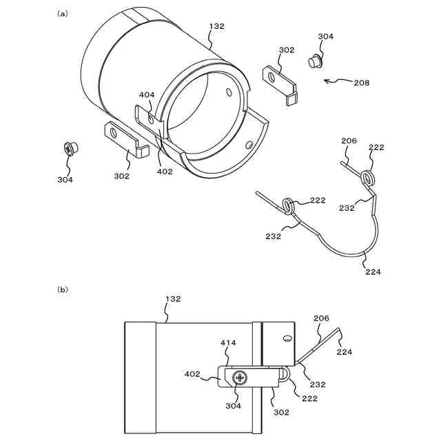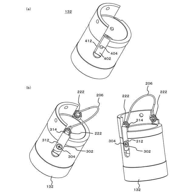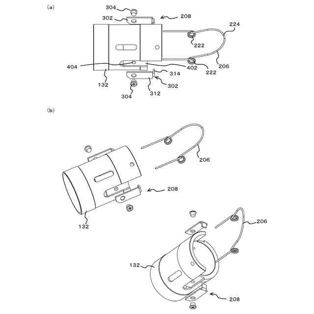 また、上記のようなバネ固定部を用いる場合、バネ固定部は、例えば、ダブルトーションバネの一端及び他端のそれぞれに対し、バネ端固定板を有する。この場合、バネ端固定板は、例えば、バネ固定筒状体の外面に固定される板状体である。バネ端固定板は、例えば、バネ固定筒状体の外面との間にダブルトーションバネの端を挟んで、バネ固定筒状体の外面に固定される。また、この場合、バネ端固定板は、例えば、板状部及び突出部を有する。板状部は、例えば、バネ固定筒状体の外面に沿って固定される板状の部分である。突出部は、板状部から突出する部分である。そして、バネ端固定板は、例えば、ダブルトーションバネにおいて線材が巻かれている部分であるコイル部に突出部を挿入した状態で、バネ固定筒状体の外面に固定される。このように構成すれば、例えば、バネ固定筒状体に対し、ダブルトーションバネを適切に固定できる。