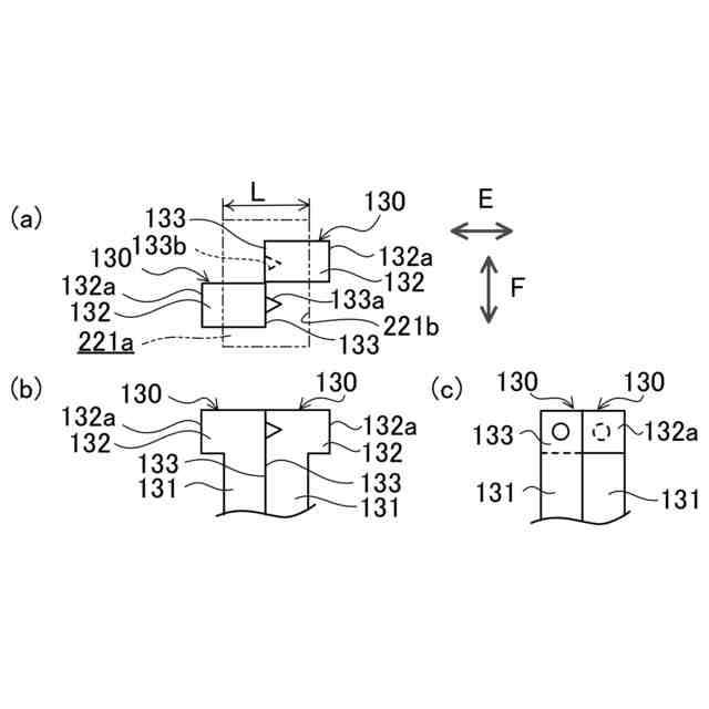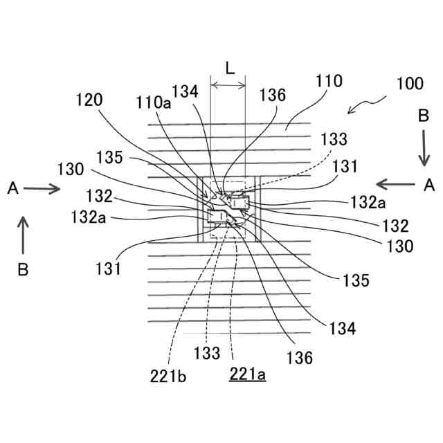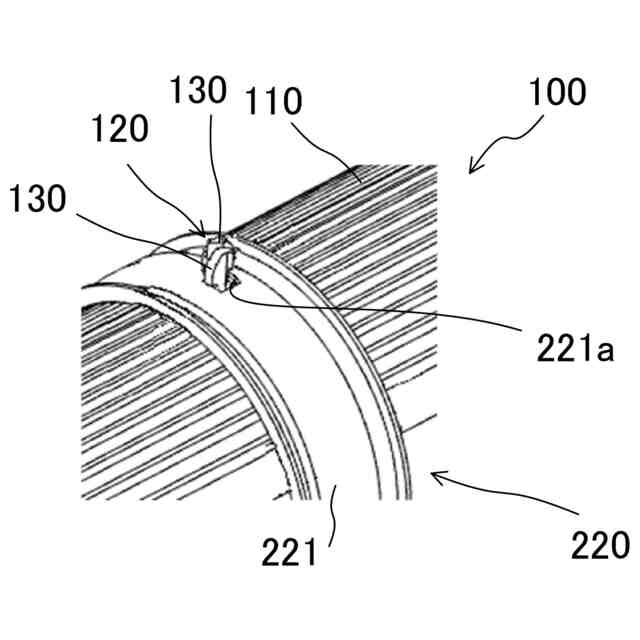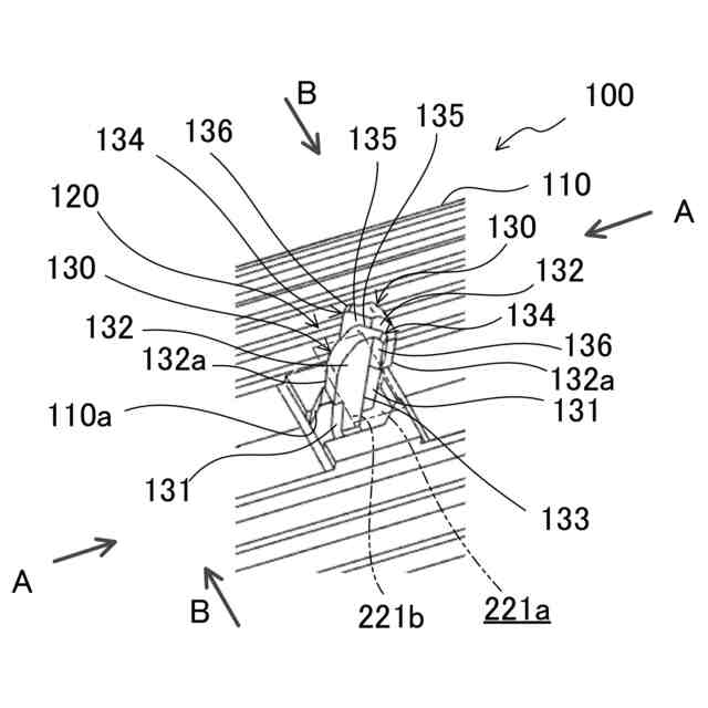 上記1対の係止体における上記外側張出部の外方部どうしの間の係止体外方部間寸法が、上記係止穴の上記対向する内縁部の間の距離である係止穴内縁間距離よりも短くされる挿入可能状態と、