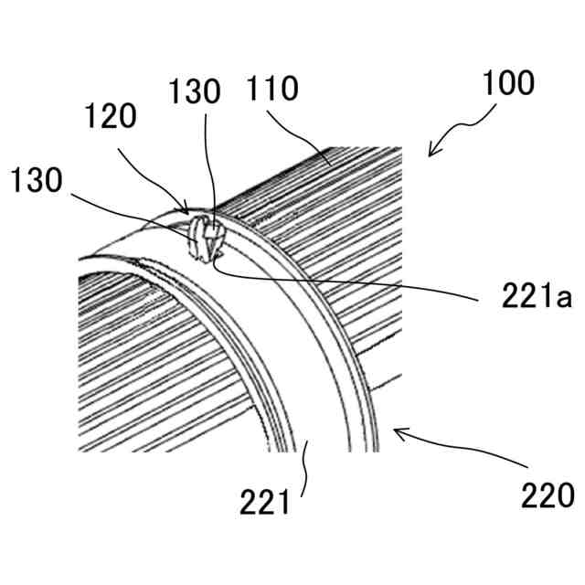 上記係止体外方部間寸法が、上記係止穴内縁間距離よりも長くされる係止状態とをとり得るように構成されるとともに、
