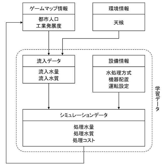 さらに、下水道施設を構成する設備・機器群やそれらの適切な運転設定は、下水道施設が存在する地域の諸状況(人口、天候及び産業など)によって異なるため、ある地域において環境条件、運転設定及び処理水情報を学習するのみでは、他の地域において機能するAIモデルが生成されない可能性が高い。