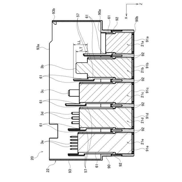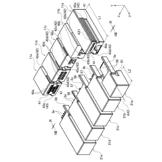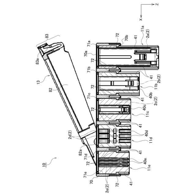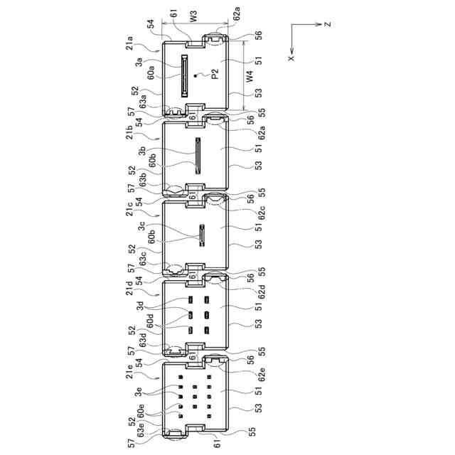 前記第1インナーハウジングと前記第2インナーハウジングとの組は、前記接続方向に直交する方向を並列方向として複数あり、
