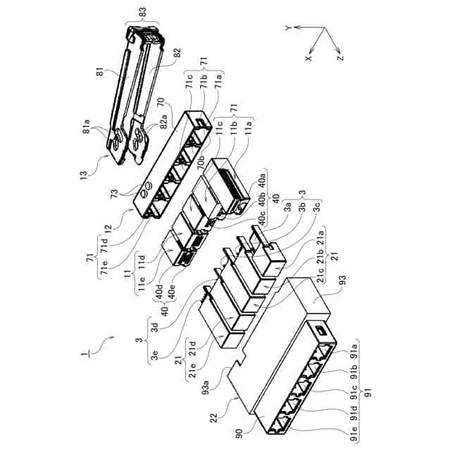 図1は、一実施形態に係るコネクタ1の斜視図である。図2は、コネクタ1の分解斜視図である。図1では、第1コネクタ部10が第2コネクタ部20に組み付けられる前の状態が示されている。