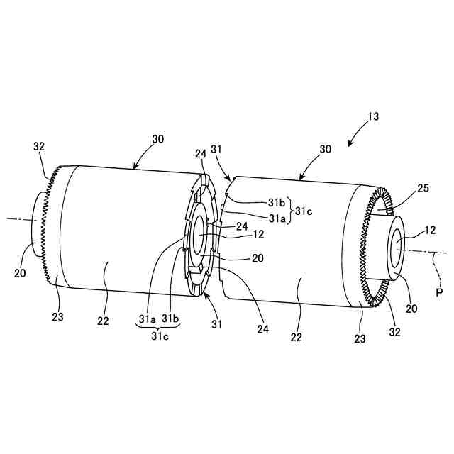 複数の前記分割本体部は、前記嵌合部を有する側と反対側の前記軸方向の端部に、