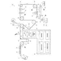 尚、このストッカは、無端チェーンと、該無端チェーンに一定間隔で設けられ、原反を保持可能な少なくとも8個の受け部材と、無端チェーンを間欠送りすることで受け部材を一定距離だけ移動させる駆動装置とを備え、所定の搬入位置に配置された受け部材へと原反を取入れ可能とされる一方、所定の排出位置に配置された受け部材から原反を取出し可能に構成される。受け部材からの原反の取出しは、前記排出位置に配置された受け部材が自動的に傾斜し、この受け部材から原反が自重によって転がり出すことで行われる。