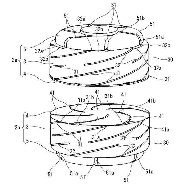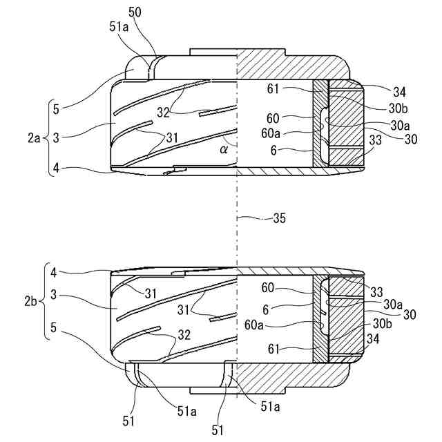前記径方向に貫通した形状、および当該コイル部における前記軸心方向の中央部から前記対向方向の反対側に対しZ巻き方向で延在した形状であって、当該対向方向の反対側に開口して第2スリット開口端部が形成されている第2スリット孔と、