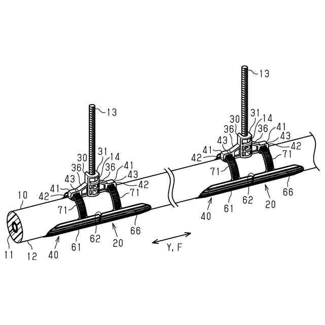 配管材保持具について、前記維持部は、前記延在方向において前記固定部を挟んだ両側に設けられ、前記維持部と前記組を形成する前記締結帯部は、前記プレート部において前記延在方向に離れた2個所から延出していてもよい。