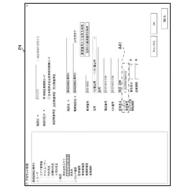 図4は、本発明の実施形態に係る業務支援システムで表示される会計画面の一例を示す図である。