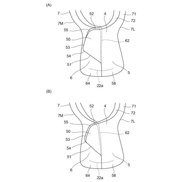 (A)足甲の高さが標準的な場合のタン及び(B)足甲の高さが大きい場合のタンを示す模式図