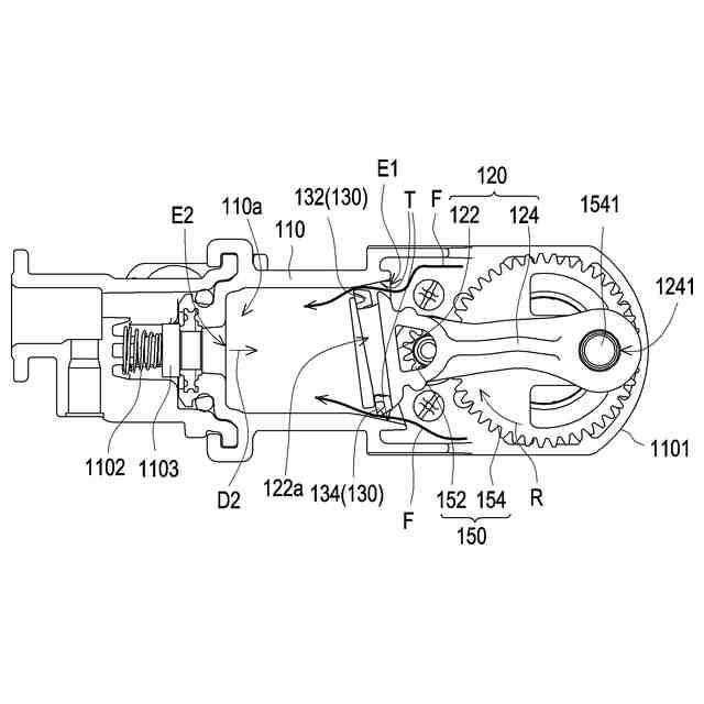 【解決手段】シリンダ110はピストン通路110aを有する。ピストン通路は後端と前端とを有する。ピストン120は、ピストン部122とロッド部124とを含む。ピストン部はピストン通路内に位置し且つ環状溝122aを有する。ロッド部は後端を介してピストン部に接続する。ピストンリング130は環状溝に設けられる。ピストンリングの第1部分132はピストン部の第1側部1221に位置し、ピストンリングの第2部分134はピストン部の第2側部1222に位置する。駆動ユニットはロッド部に結合され、且つロッド部によってピストン部を前端と後端との間で往復移動させるよう駆動することに適合される。環状溝の第1側部における幅W1が環状溝の第2側部における幅W2よりも広いことで、ピストンリングの第1部分をピストン部の往復移動に伴って環状溝の幅方向に移動可能とする。