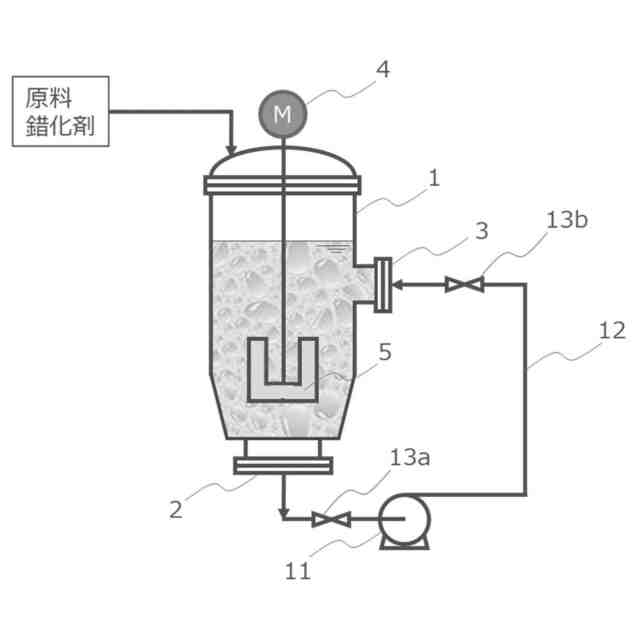 前記反応槽が、前記反応槽内の内容物を含む流体を、前記抜き出し口から前記反応槽の外部に抜き出し、前記戻し口から戻す循環ライン、及び撹拌翼を有する撹拌機を備える、