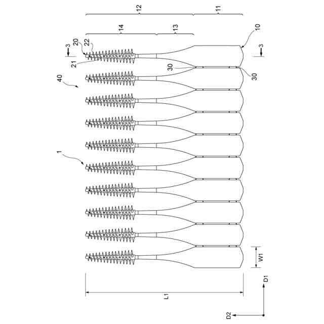 本発明の一実施形態に係る歯間清掃具の構造を概略的に示す平面図である。