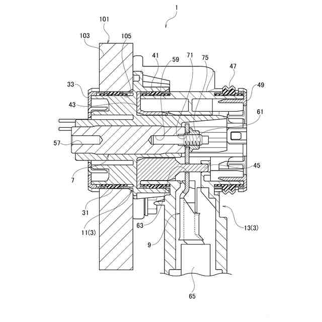 図1に示すように、本実施形態に係るコネクタ1は、例えば、車両に搭載された電気部品101に適用される。コネクタ1は、例えば、電気部品101と、車両に搭載され電源や機器などの他の電気部品(不図示)とを電気的に接続する。図1~図3に示すように、電気部品101には、例えば、ケーシング103の内部に相手端子(不図示)が収容されている。ケーシング103には、相手端子が配置される壁部を貫通して形成された貫通孔からなる配置部105が設けられている。配置部105には、コネクタ1が組付けられ、電気部品101とコネクタ1とが電気的に接続される。
