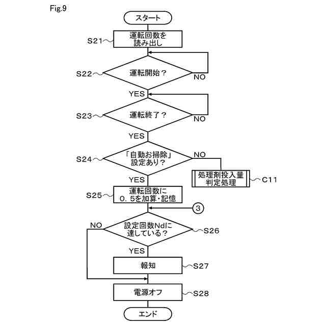 前記制御部は、前記運転の設定が前記掃除機能を含める設定から前記掃除機能を含めない設定に変更された場合に、前記設定回数を、前記掃除機能を含めない設定に対応した前記設定回数に変更する、