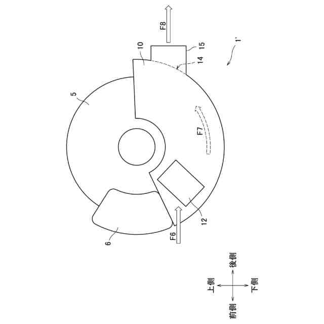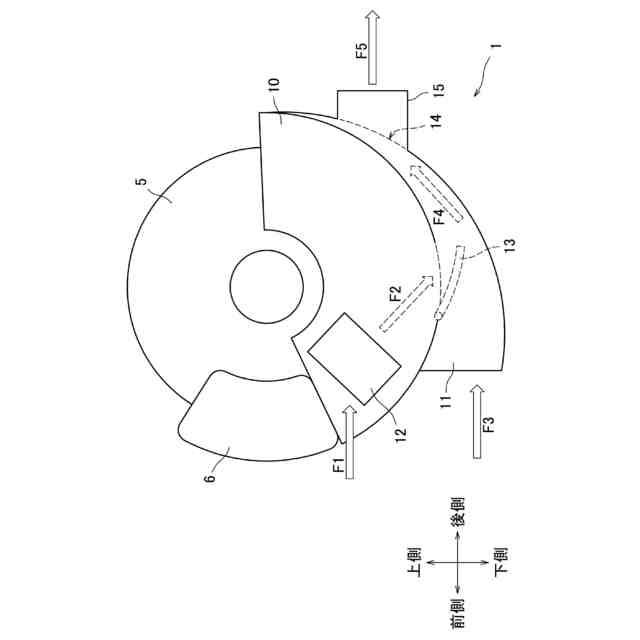 ブレーキ用集塵装置の走行風の流れを表す模式図である。