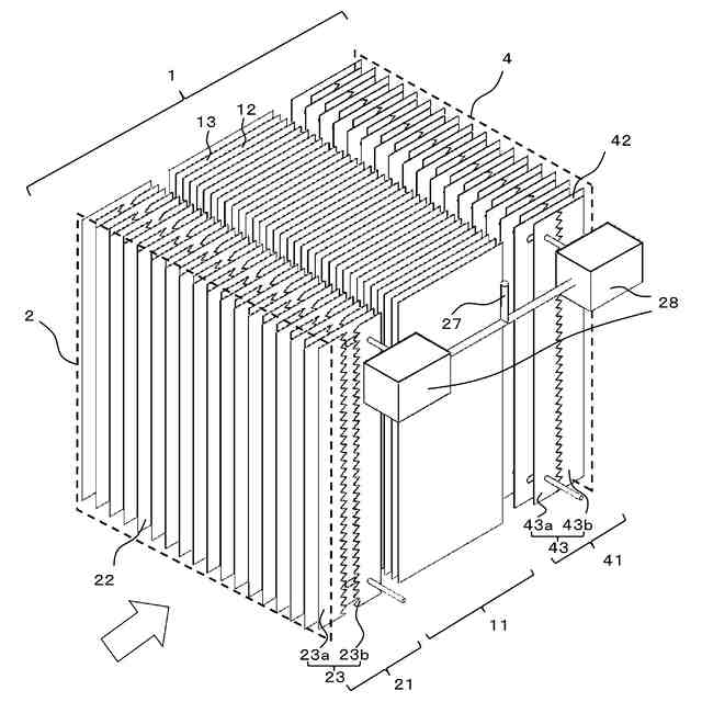 このような一般的な電気集塵装置は、電気集塵装置の前方または後方に設置されたファンによって、空気を送るまたは吸い込むことで、電気集塵装置に空気を通過させるため、電気集塵装置を通過する空気の通風方向は一方向流となる。