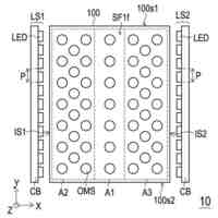 それぞれ前記第1方向及び前記第2方向に沿って前記第2基板上に間隔を空けて配列され、且つ前記複数の画素構造の複数の前記画素電極と重なる、複数の電極パターンと、
