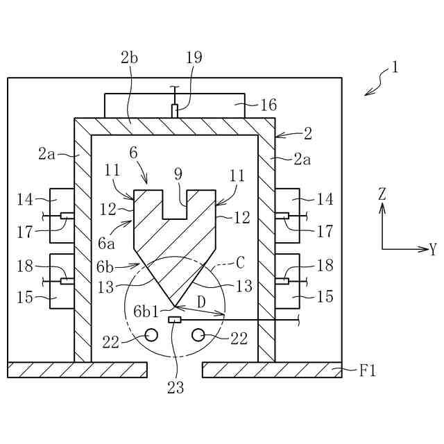 さらに、ガス抜き工程では、成形体への溶融ガラスの接触を促進させるために、成形体は、溶融ガラスを成形することが可能な正常な段階の姿勢から、所定の傾き角θをもって傾けられる(同文献の請求項5及び段落0012参照)。