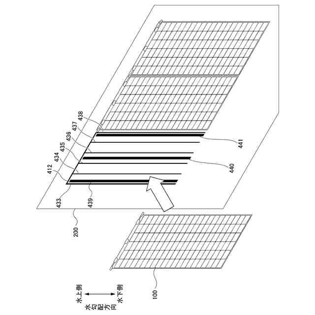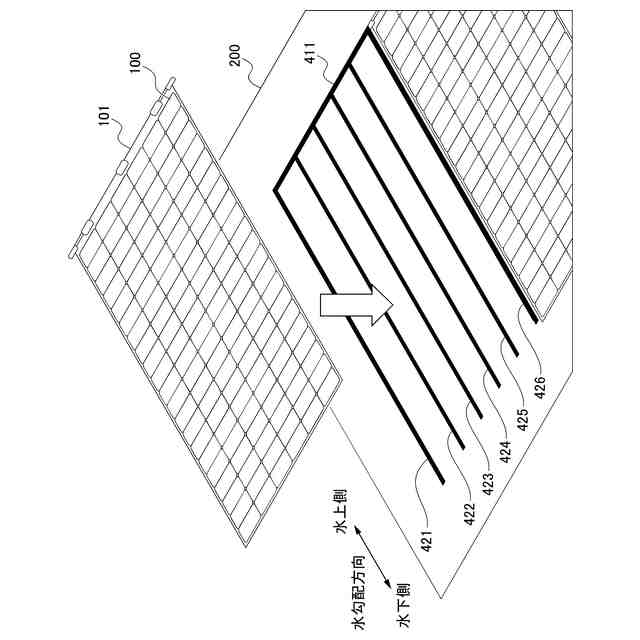 水勾配を有する設置対象物に設置された太陽光パネルであって、