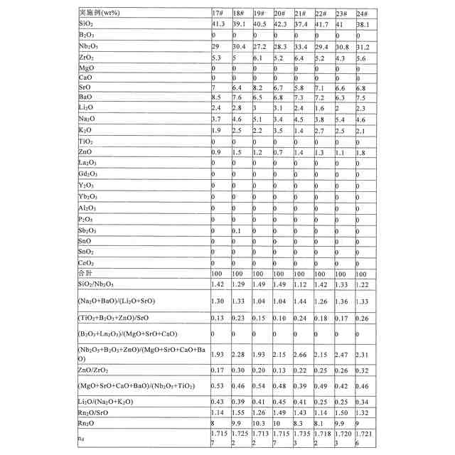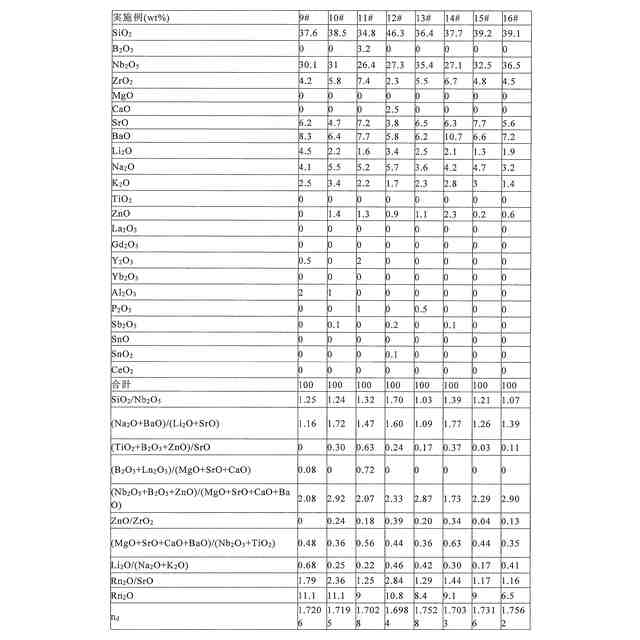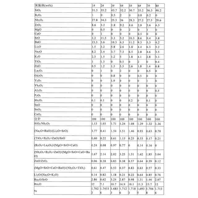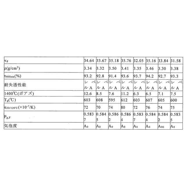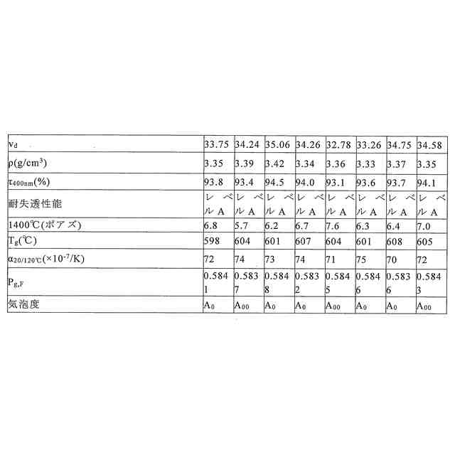 Oの合計含有量である。合理的な組成設計により、本発明の光学ガラスが高い光透過率及び低い相対的部分分散を有し、高性能光学システムの応用を満たす。