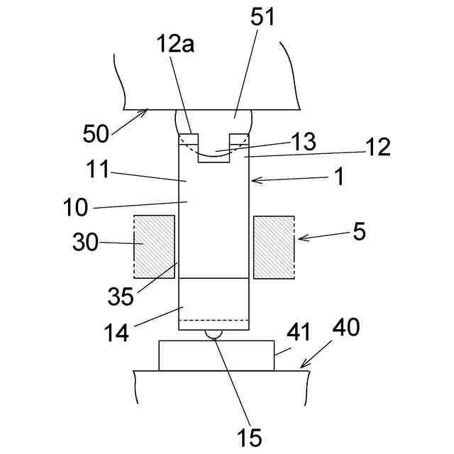 コンタクトプローブ1及びソケット5であって、ハウジング部を断面とした側面図である。