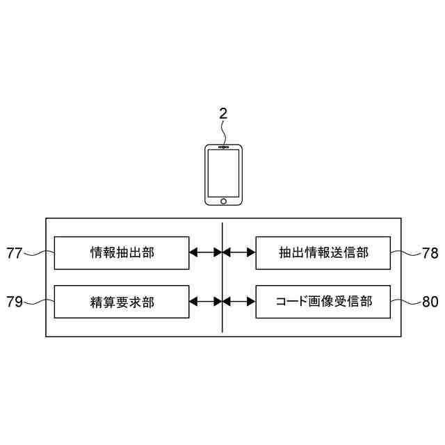 特許文献2に記載の駐車場の精算システムでは、出場口に配置された精算装置にて精算が行われる際には、精算装置から支払い要求が、利用者の携帯端末に出力される(例えば2次元コードの表示や近距離無線通信等が実行される)。支払い要求を取得した利用者の携帯端末は、通信回線を介して、決済要求を決済装置に送信する。決済要求を取得した決済装置は、決済処理を実行し、通信回線を介して決済完了通知を利用者の携帯端末に送信する。決済完了通知は、携帯端末から精算装置に出力され、出場口のゲートが開かれる。