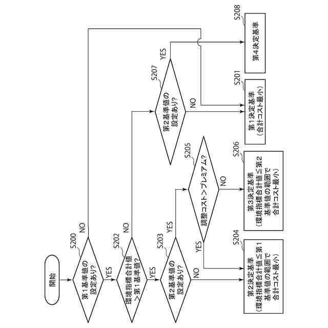 【解決手段】本願は、目的物の製造プロセスで用いられる複数の資源を含む運用条件を決定するための運用条件決定装置に関する。本装置は、複数の資源としてそれぞれ選択可能な複数の候補資源について、購入コスト、及び、環境負荷に対応して規定される賦課金に関連付けられた環境指標を含む候補資源情報を取得し、候補資源情報に基づいて、各候補資源について、購入コストに賦課金が加算された実コストを算出する。また本装置は、複数の候補資源の組み合わせごとに、実コストを合計した合計コストを算出し、決定基準に基づいて比較することにより、運用条件を決定する。