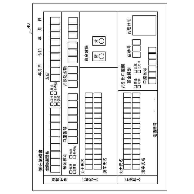 前記帳票は、振込依頼書であって、