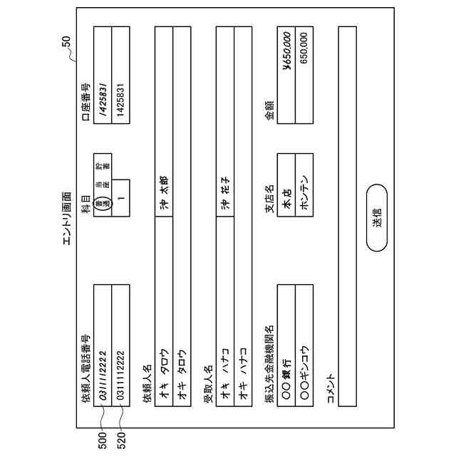 前記エントリデータは、前記振込依頼に係る複数の項目それぞれに対応するエントリデータである、