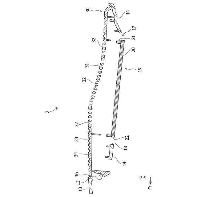 通常、スピーカはオプション仕様であるため、ユーザがオプションとしてスピーカを選択した場合に収納部にスピーカが取り付けられるが、ユーザがスピーカを選択しない仕様においては、収納部にスピーカが取り付けられることなくグリル孔が形成されたスピーカグリル(カバー部材)が開口に嵌合されている。