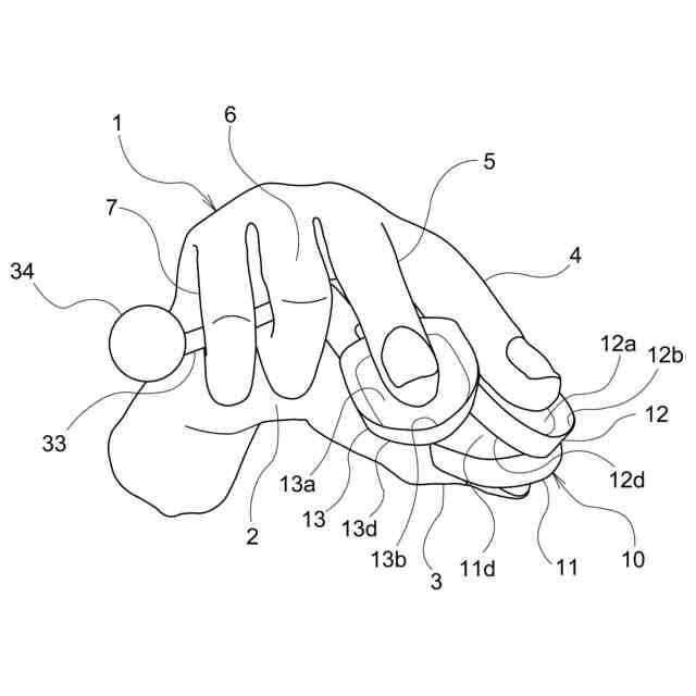 前記第2摘み部から前記手の平に向かって延びる第2枝部と、
