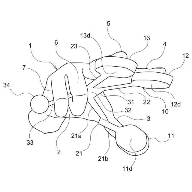前記第3摘み部から前記手の平に向かって延びる第3枝部を備え、