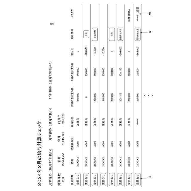 前記今回計算対象期間において、前記支払対象者に対応付けられた前記メモ情報を取得し、前記一覧画面に表示された前記支払対象者に、前記メモ情報に応じたメモタグを付与するメモタグ付与部のコードと、