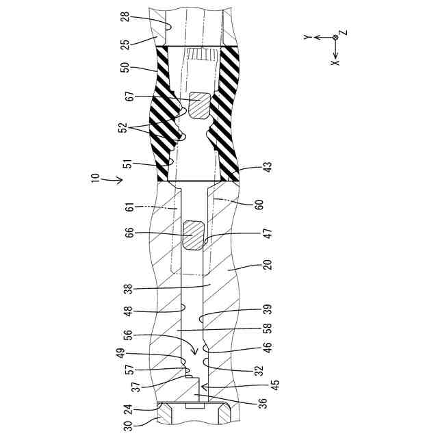 前記ハウジングは、前記キャビティの内面に、前記前方傾斜面と対向する対向傾斜面を有し、