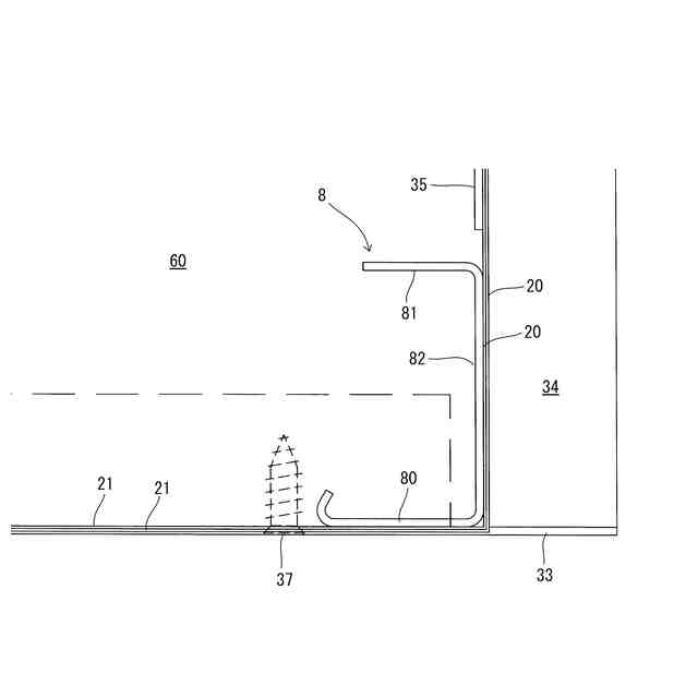 1つの態様では、前記下ケース板の前記下面板の後端部位は、下側の横材に固定されており、