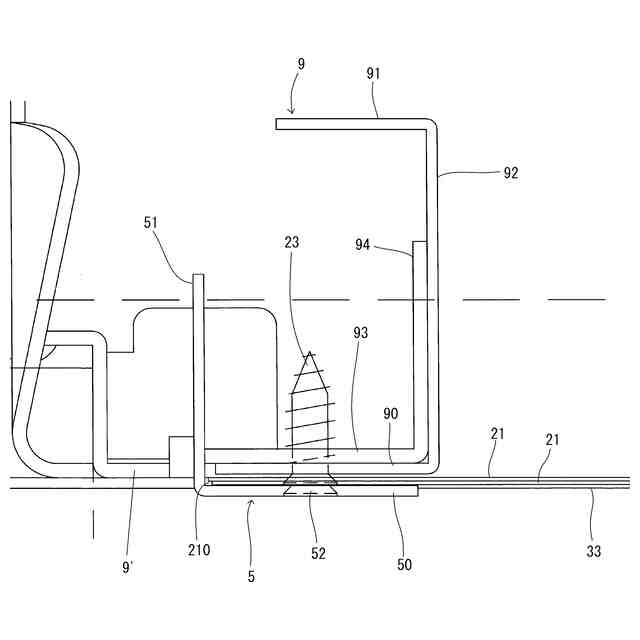 1つの態様では、前記下部カバーは、水平状の下辺と、立ち上がり辺と、からなり、前記下辺が、前記後端部位の下面に当接ないし近接し、前記立ち上がり辺が、前記下ケース板の後端縁を覆うように取り付けられている。