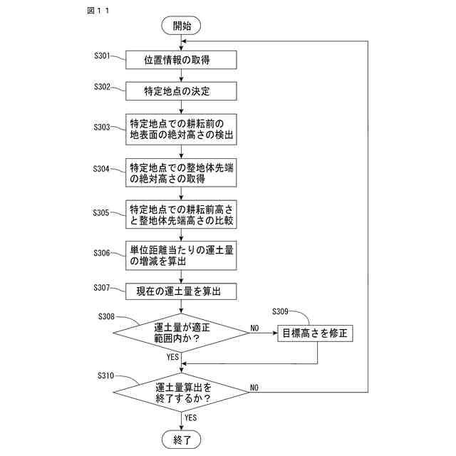 本発明の農作業機用制御システムの運土量算出の一例を示すフローチャートである。