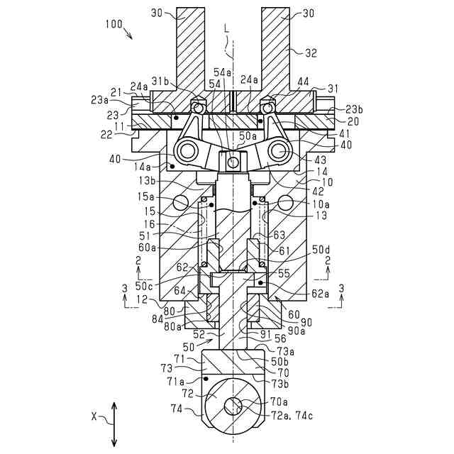 駆動軸を駆動する外部の駆動源としては、例えば、原動軸により回転するカムがある。原動軸は、駆動軸の軸方向と直交する方向に延びるとともに、カムを回転させる。回転するカムは、当該カムの外周面に駆動軸の端部を沿わせることにより、カムの形状に合わせて、駆動軸を軸方向に動作させる。しかし、駆動軸には、軸方向への荷重の他に、回転するカムとの間における摩擦力に起因する横荷重が発生する。駆動軸に加えられる横荷重は、駆動軸の軸方向及び原動軸の延びる方向の各々と直交する方向に加えられる。駆動軸に加えられる横荷重は、一対のレバー及び一対の把持部材に負荷を加える。この結果、当該横荷重は把持装置の寿命の低下を導く虞がある。