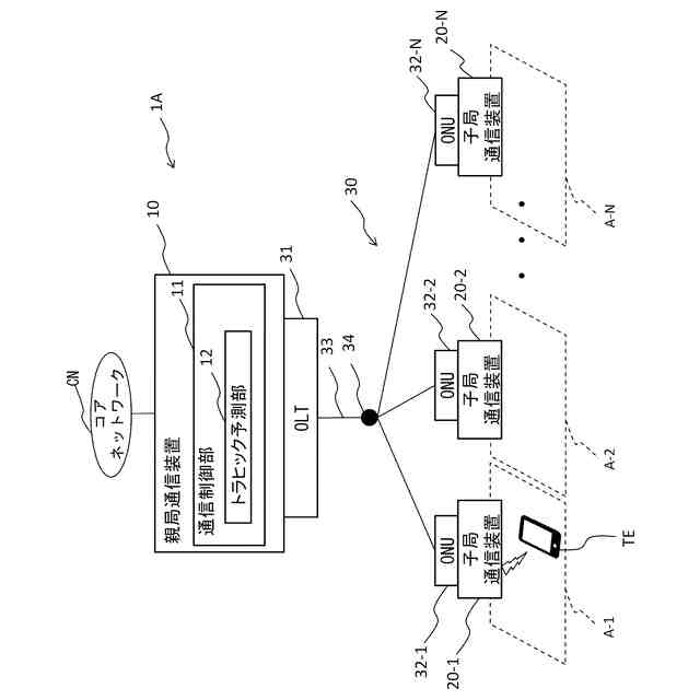 従来、一般的に、移動体通信網(通信キャリアのネットワーク)において、無線基地局はユーザ装置と通信する子局通信装置と子局通信装置を制御する親局通信装置に分割されている。親局通信装置と子局通信装置との間は光ファイバ等の伝送路で接続され、無線基地局内には複数の無線装置が配置されている。1つの無線基地局あたりの無線装置数は、その無線基地局が処理すべき移動端末の数と使用頻度を予測して設定されたトラヒックの量によって決められる。そして移動端末はトラヒックの多い時間帯でも使用可能でなければならず、無線装置の数はかなり多くなる。