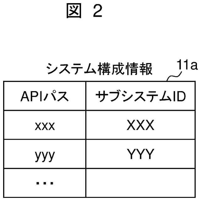 前記リクエストの種類を識別可能な情報と、前記サブシステムを識別可能な情報と、の対応関係を管理するシステム構成情報を格納するシステム構成情報記憶部と、を含み、