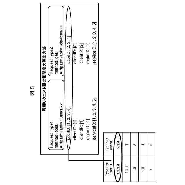 実施形態1に係る異種リクエスト間の相関度の算出方法を説明するための図。