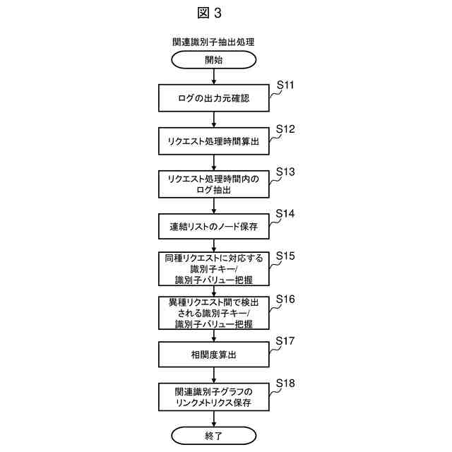 【解決手段】ログ抽出方法では、同種のリクエストに係るログを把握し、このログに含まれる識別子を識別する識別子キーと、ログにおいて識別子が取る値を表す識別子バリューと、の対応関係を管理する同種リクエスト関連識別子リストを生成する。またログ抽出方法では、同種リクエスト関連識別子リストにおいて、異種のリクエストに対応付けられている同一の識別子の識別子バリューに基づいて、異種の前記リクエスト間における該識別子バリューの相関度を算出する。そしてログ抽出方法では、識別子キーをノード、識別子キーと識別子との関係をリンク、相関度をリンクメトリックスとして、識別子キーをリンクメトリックスに基づいてグループ化した関連識別子グラフを生成する。