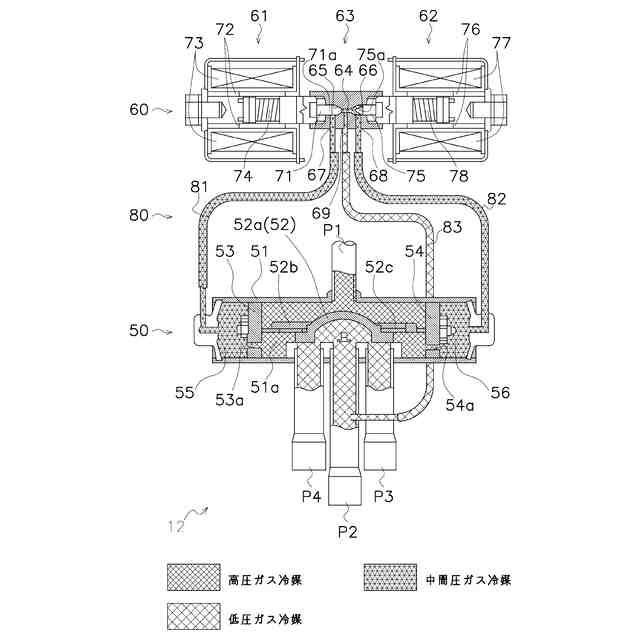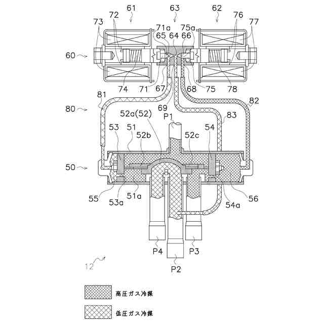 特許文献1(特開昭63-015056号公報)に開示される四路切換弁は、冷媒の循環方向を切り換える目的で冷凍装置に搭載される。